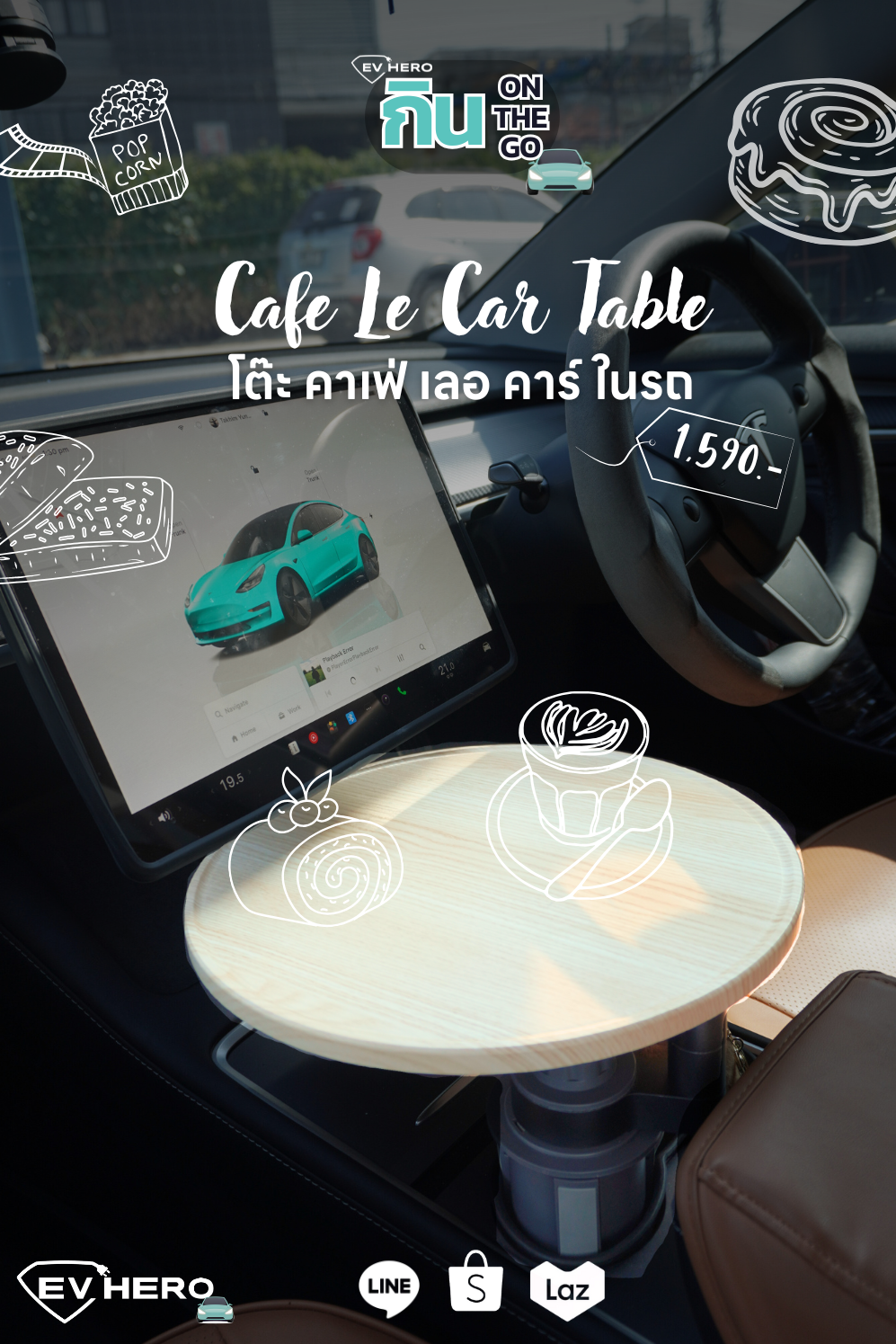 เปลี่ยนห้องโดยสารรถยนต์ให้สะดวกสบายยิ่งขึ้นด้วย “Glam Table” โต๊ะวางของอเนกประสงค์จาก EV HERO